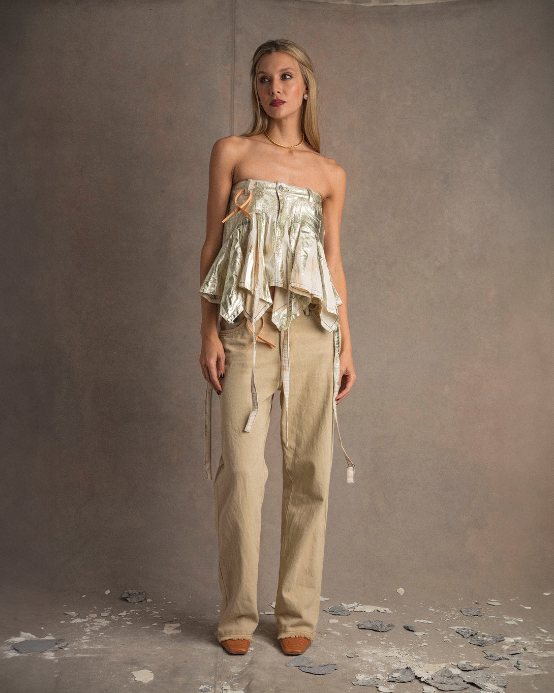 Las prendas con foil, encerados y procesos manuales: Es normal que en el primer lavado pierdan algo de brillo. ¡No te preocupes! Esto hace parte la magia del contacto entre los humanos y la energía cósmica, con el tiempo la prenda se hará cada vez más tuya y contará la historia de tu alma.